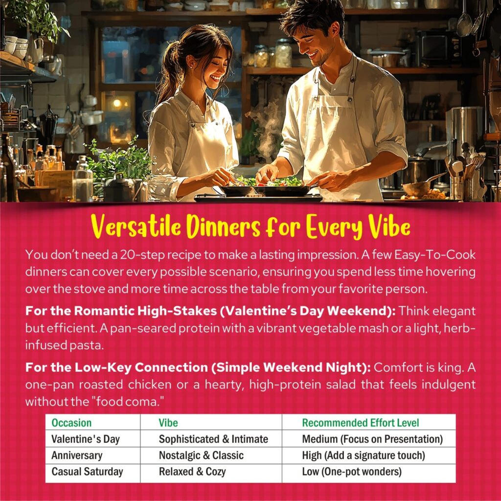 The smartest date-night cooking isn’t about doing the most — it’s about choosing meals that look intentional without locking you into the kitchen. When the food is easy to manage, you get more time where it actually matters: across the table.