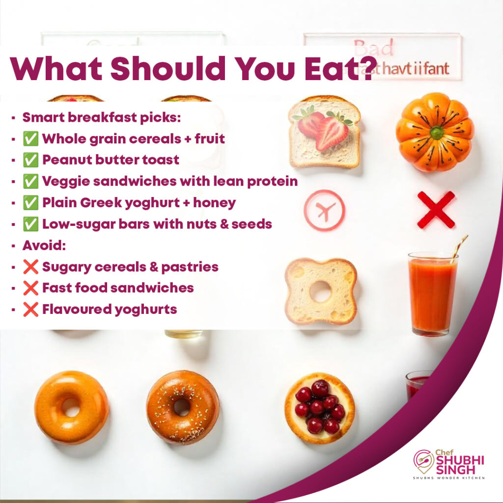 I hope the above suggestions help you to be more judicious and careful about your breakfast choices. Eat well, be active throughout the day and stay happy!