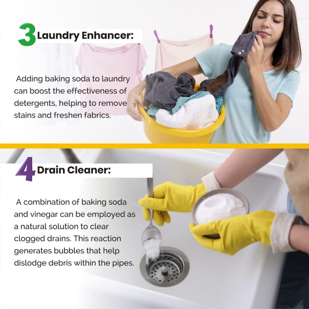 3. Laundry Enhancer: Adding baking soda to laundry can boost the effectiveness of detergents, helping to remove stains and freshen fabrics.