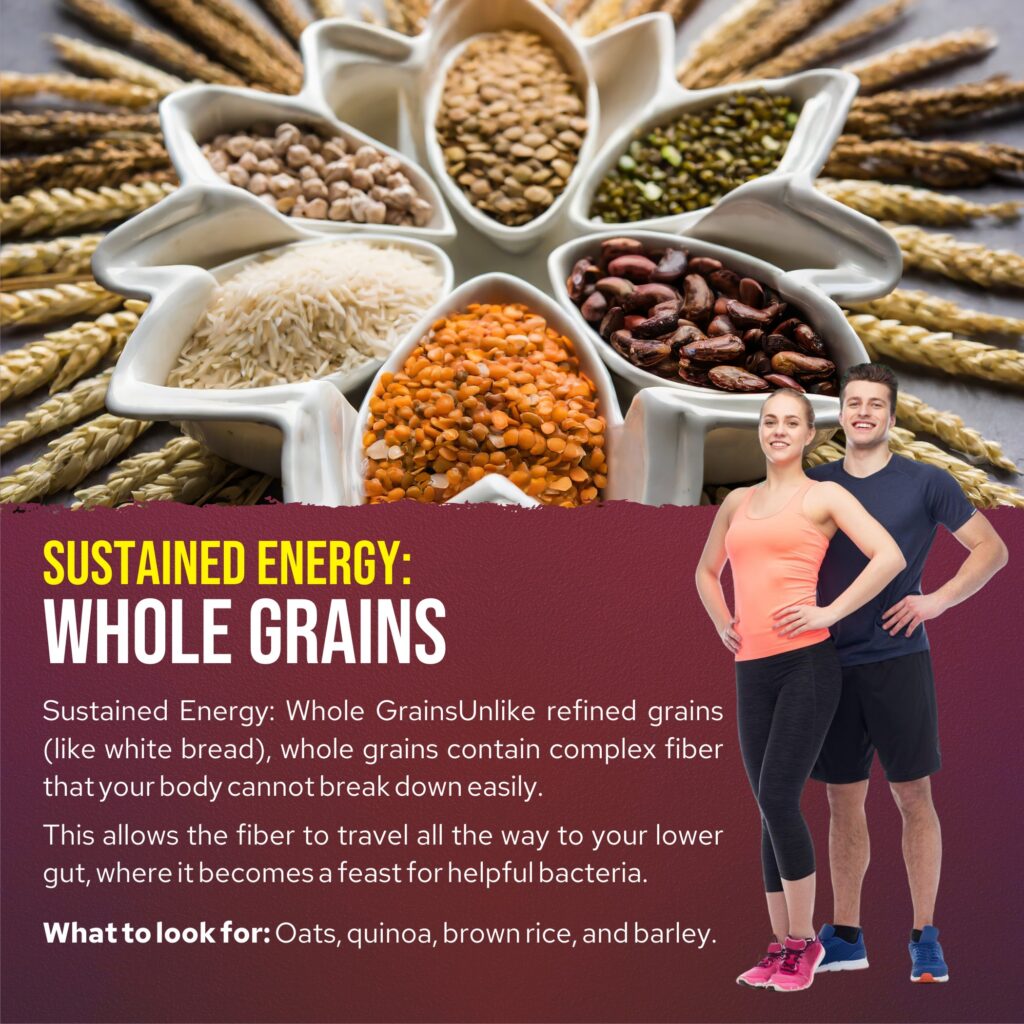 Unlike refined grains (like white bread), whole grains contain complex fiber that your body cannot break down easily. This allows the fiber to travel all the way to your lower gut, where it becomes a feast for helpful bacteria.
