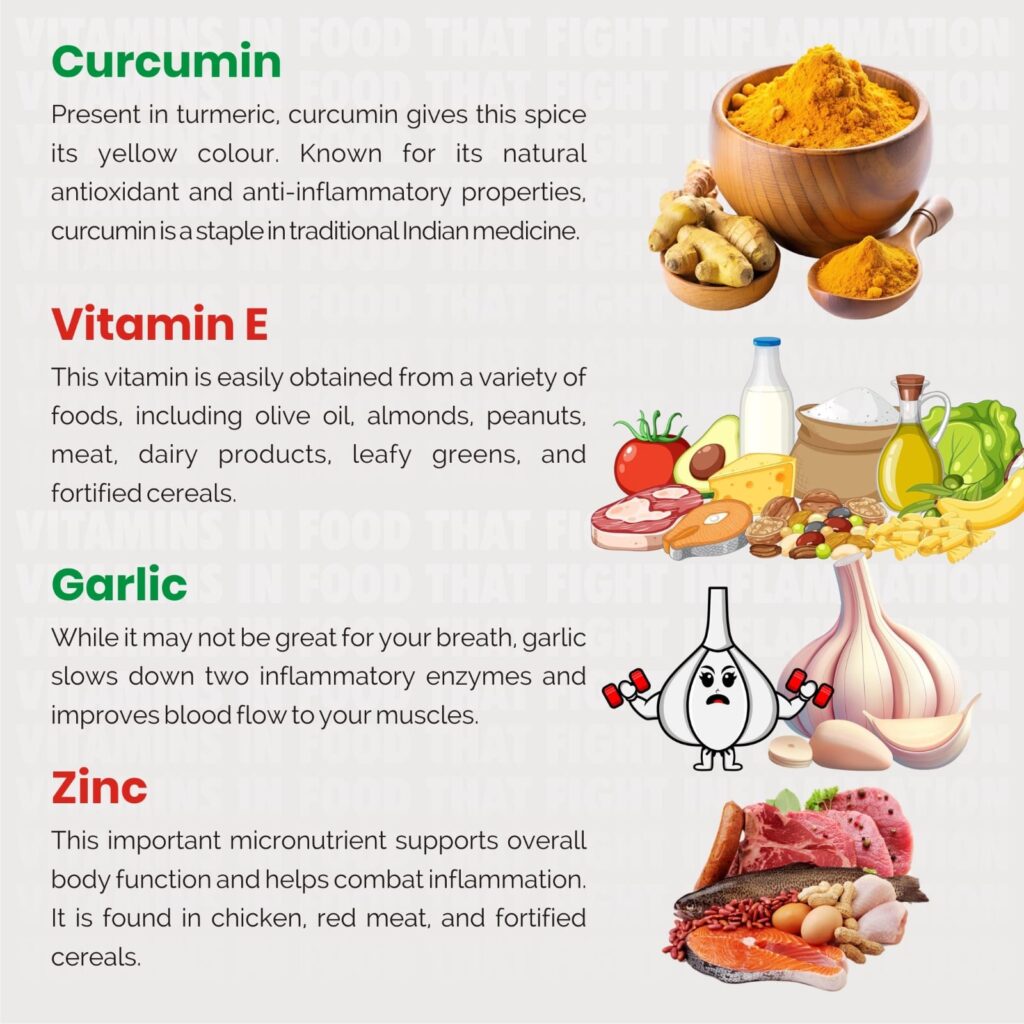 Zinc: This important micronutrient supports overall body function and helps combat inflammation. It is found in chicken, red meat, and fortified cereals.