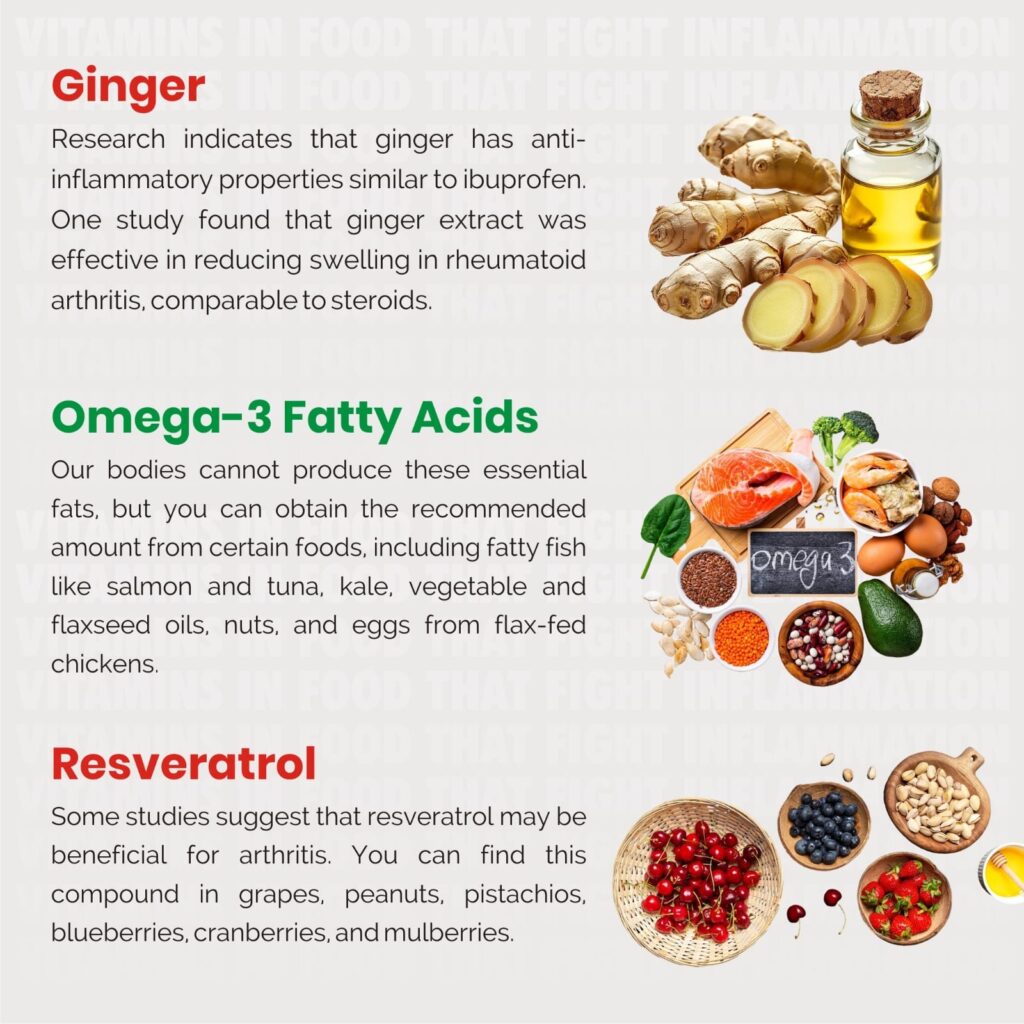 Ginger: Research indicates that ginger has anti-inflammatory properties similar to ibuprofen. One study found that ginger extract was effective in reducing swelling in rheumatoid arthritis, comparable to steroids.
